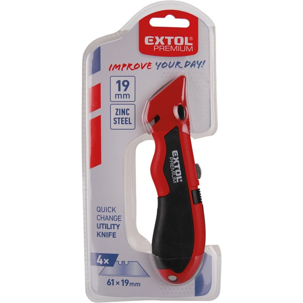PVC vágókés, 5 db trapézpengével, gyorstöltős, pengetárolós, festett ALU ház, gumírozott, zsinórvágó penge: 9124,8855099