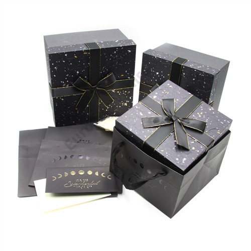PAPÍRDOBOZ 3 DB FEKETE, EZÜST DÍSZTASAKKAL 1/24 18x18x11; 16x16x10; 14x14x8 cm