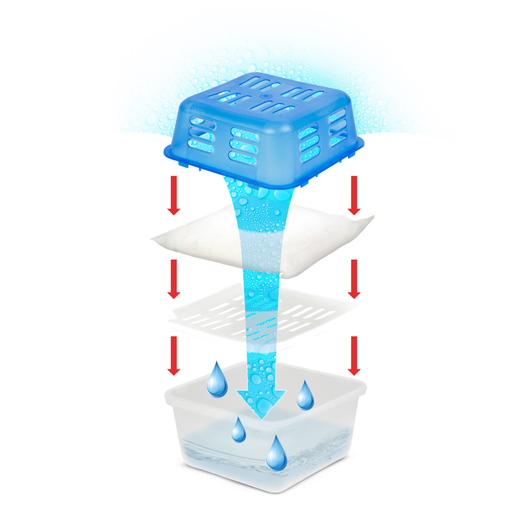 Lakásunkban az egészséges, friss levegőért és a penészedés elkerülése érdekében szabályoznunk kell a hőmérsékletet és a páratartalmat. Utóbbiban nyújt kiváló segítséget ez a termék, amely párás, nyirkos helyen a csomagban lévő párna segítségével összegyűjti a helyiség levegőjében található nedvességet.