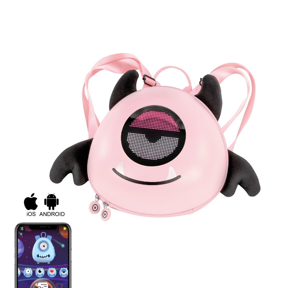 A beépített 10,2 × 10,2 cm-es LED kijelző 32 × 32 pixeles felbontású, P3-as pixelosztással. A kijelző Bluetooth-kapcsolattal vezérelhető, LOY KIDS nevű applikáción keresztül, amely iOS-re és Androidra is elérhető. A használat gyors: a kijelző működtetéséhez csak egy power bankra van szükség, amit belülről egyszerűen csatlakoztathatsz.