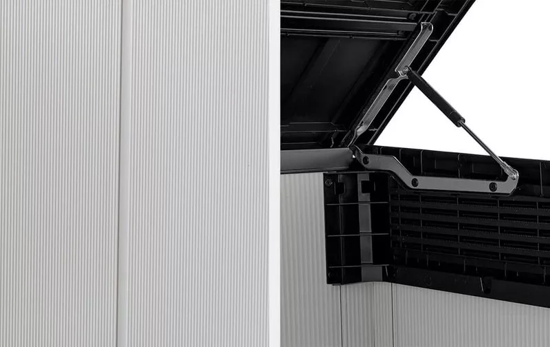Az időjárásálló dupla falak stabilitást és karbantartást nem igényelnek, míg a beépített szellőzés és a padlólap tisztán, szárazon és frissen tartja a tartalmat.