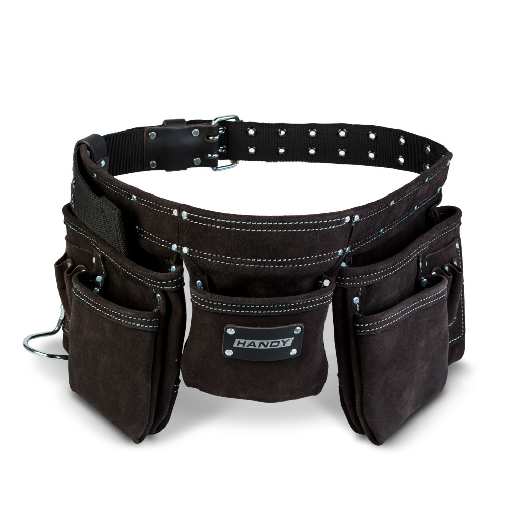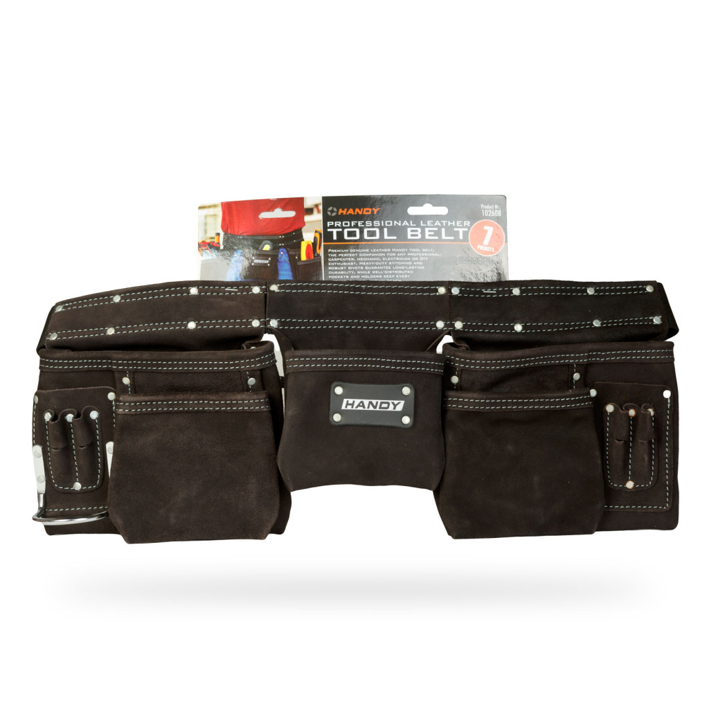 Professzionális bőr szerszámtartó öv - 7 zseb, 1 kalapácstartó, 4 ceruzatartó