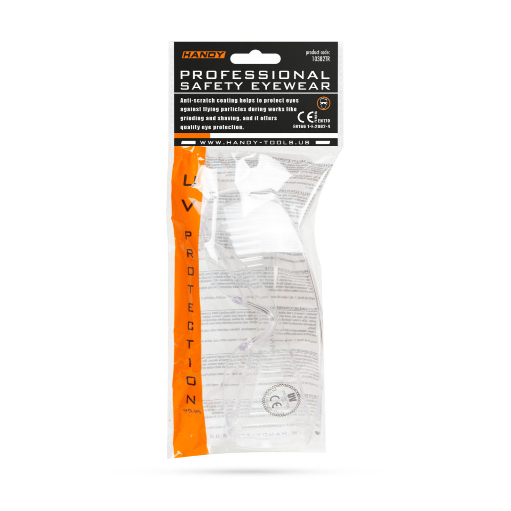 A karcolódásmentes lencséknek köszönhetően munkavégzés közben védelmet nyújt csiszolás, gyalulás és egyéb munkák során keletkező apró szemcsék ellen. Csaknem az összes érkező fényt továbbítja az átlátszó lencse, így gyengébb fényviszonyok között, ipari, gyári munkák során is népszerű használata.