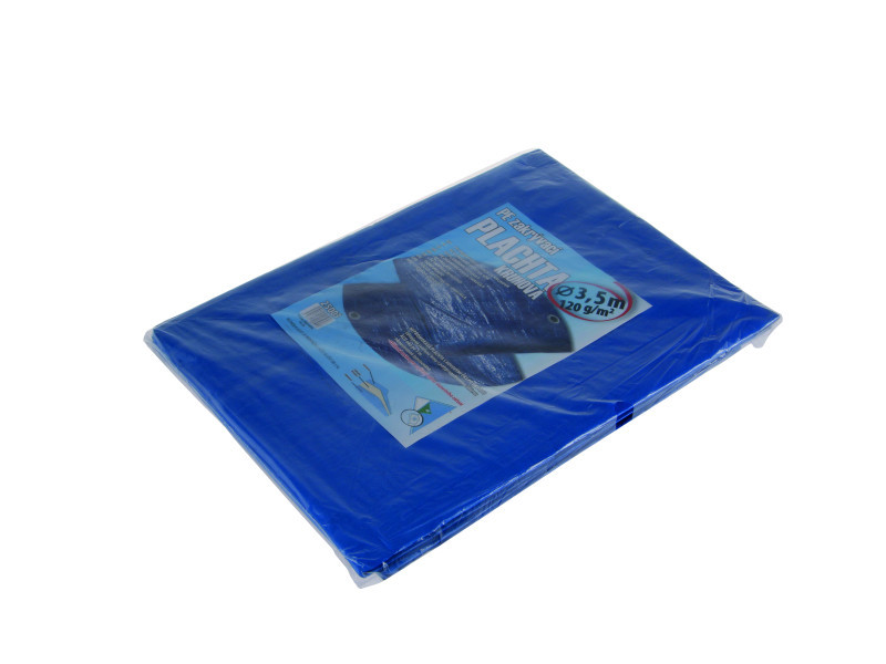 borítólap kerek 120g/m2 kék-ezüst, ezüst réteg visszaveri a nap melegét anyaga: nagy sűrűségű PE-szál, fonalszám négyzethüvelykben: 7x7, kétoldalas laminált, fonalfinomság: 600 denier 1 m-es rozsdamentes háló, UV védelem, vízálló, kopásálló, sav-, penészálló... kör alakú medencék lefedésére használható, legfeljebb 3,4 m átmérőjű területek