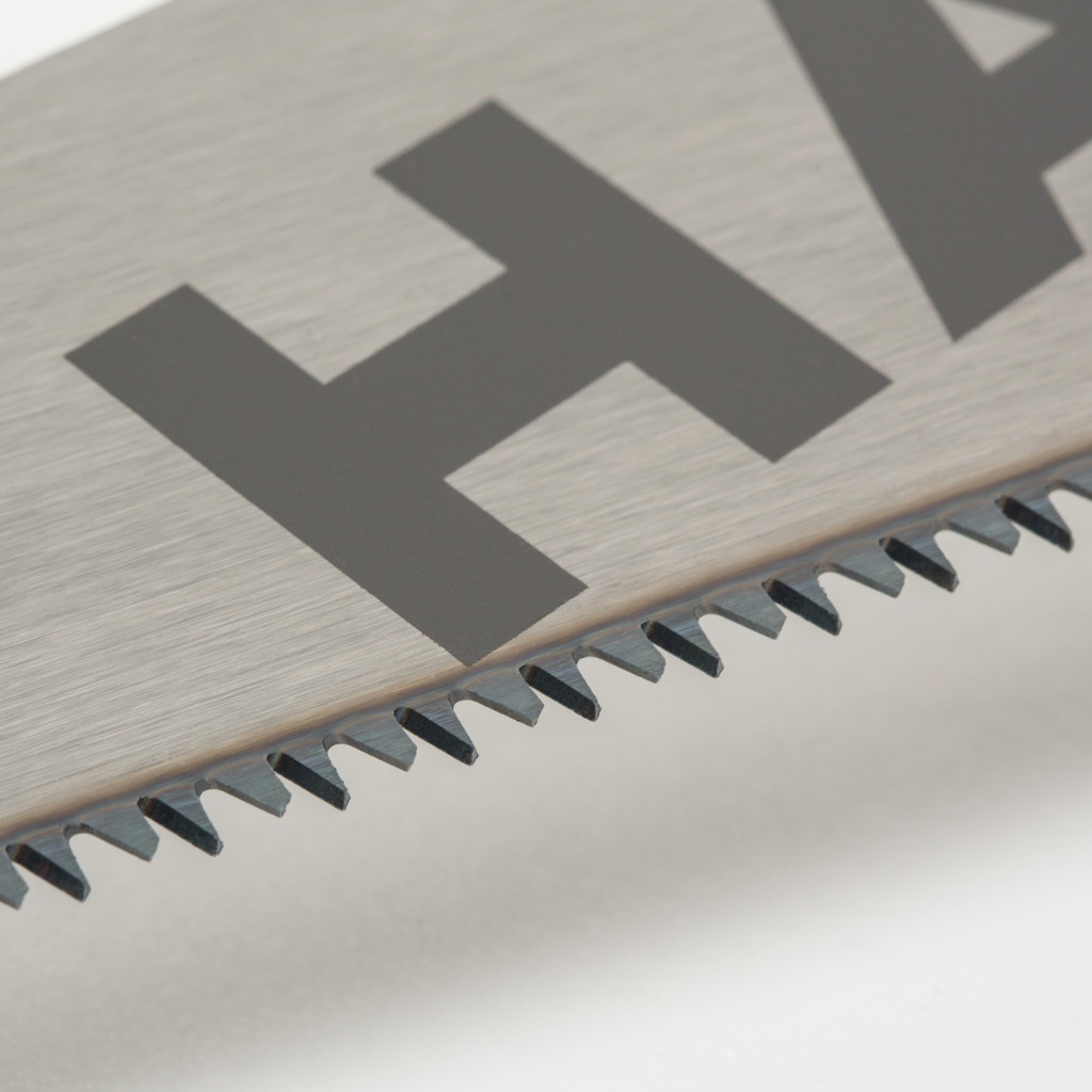 3 helyen csavarozott, erős, masszív rókafarkú fűrész, amely edzett, háromélű fogakkal rendelkezik a pontos vágás érdekében. A nagyméretű, gumírozott műanyag nyél stabil fogást biztosít munka közben.