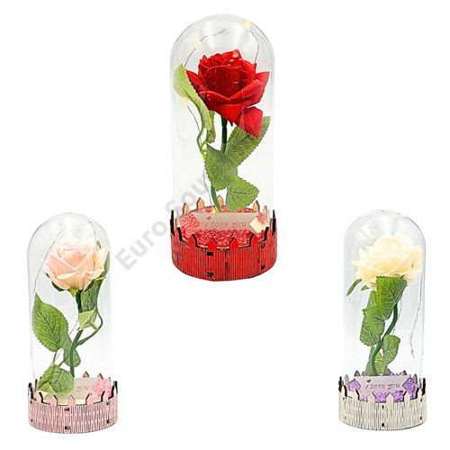 RÓZSA ÜVEGBÚRÁBAN LEDES 1/50 8,5x20 cm 3 SZÍNBEN