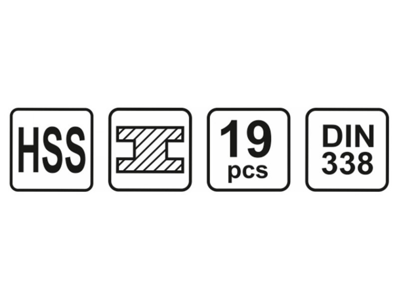 Gyorsacélból készült fúrók. Alkalmazott felület és fúróél. 135 fokos szög. Keresztvágás lehetővé teszi a fúrás indítását előjelölés nélkül. Kivitelezés a DIN 338 szerint. Professzionális alkalmazásokra szánva. Praktikus műanyag kazettában. A készlet 19 fúróból áll, [mm] átmérővel: 1.0; 1.5; 2.0; 2.5; 3.0; 3.5; 4.0; 4.5; 5.0; 5.5; 6.0; 6.5; 7.0; 7.5; 8.0; 8.5; 9.0; 9.5; 10.0 Használati figyelmeztetések: Figyelem! Munka közben mindig használjon személyes védőfelszerelést.