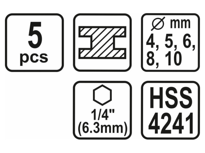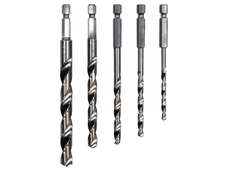 Egy STHOR 21650 hatszögletű nyéllel rendelkező fémfúró készlet. HSS gyorsacélból készült. A Split Point lehetővé teszi a fúrást előzetes jelölés nélkül. Drot fúróélek. 135 fokos szög. Használati figyelmeztetések: Figyelem! Mindig használjon személyes védőfelszerelést munka közben.