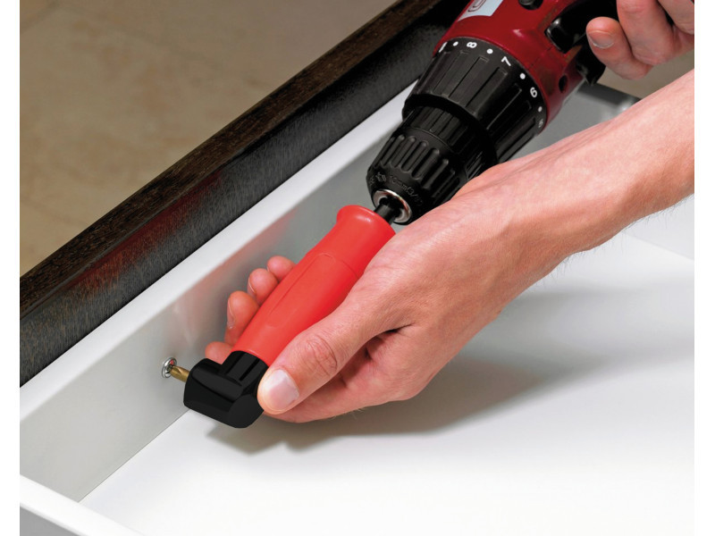 rögzítőelem korlátozott helyeken történő csavarozáshoz és fúráshoz hatszögletű szár fúróba vagy akkumulátoros csavarhúzóba szereléshez műanyag fogantyú a könnyű munkavégzéshez és elegendő nyomáshoz, csapágyhajtás, 1/4"mágneses rögzítés hatszögletű szárú fúrókhoz és fúrókhoz - mindenhol, ahol nincs elegendő kezelhetőség ACCU fúrók - bútorok, díszlécek stb. összeszerelése.