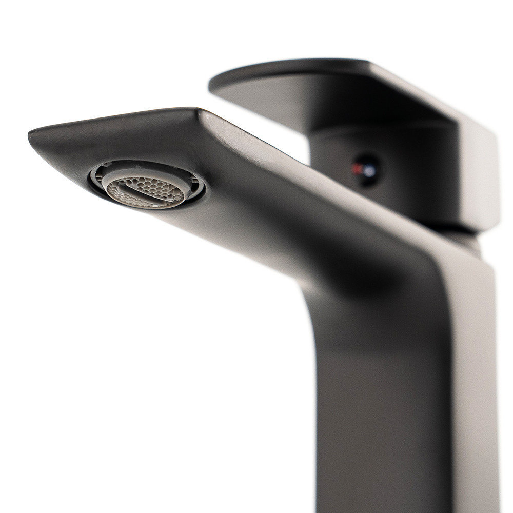 1. Matt fekete felület: A Sofia mosdó csaptelep matt fekete színben tündököl, amely azonnal eleganciát és exkluzivitást sugall. Ez a színválasztás tökéletesen illeszkedik a modern fürdőszobák stílusához.