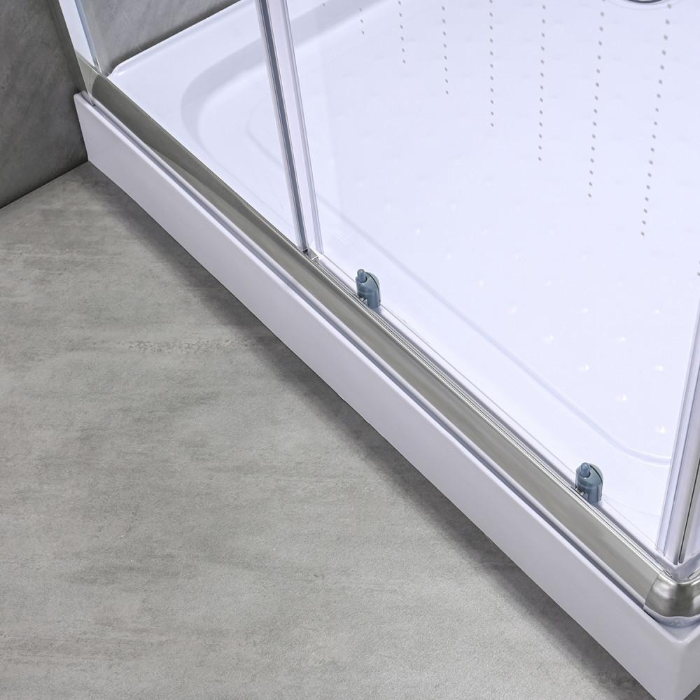 Műanyag vízzáró profilokkal rendelkezik, hogy a víz a kabinon belül maradjon. Az állítható fali profilok segítségével, ha nem teljesen függőleges a fal, akár 15 mm eltérést is korrigálhat. Amennyiben tálca nélkül rendeli, 180 cm-es magassággal, ha pedig szettben erősített akril zuhanytálcával, akkor 194 cm-es magassággal számolhat.