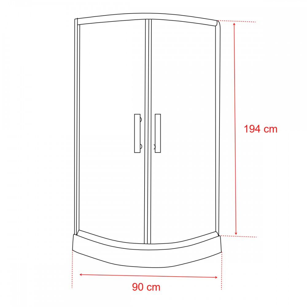 Spirit Matt 90x90x194 cm-es íves zuhanykabin, erősített akril zuhanytálcával