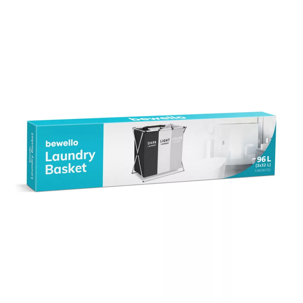 Modern megjelenésű, szövetből készült szennyestartó kosár több rekesszel. A masszív, fém váznak és a nagy befogadóképességnek köszönhetően akár több kilógram ruha, ágynemű tárolására is alkalmas. A rekeszek lehetővé teszik a különböző színű ruhák elkülönítését. Az egy mozdulattal történő összecsukás és a hordozófülek könnyű hordozhatóságot garantálnak.