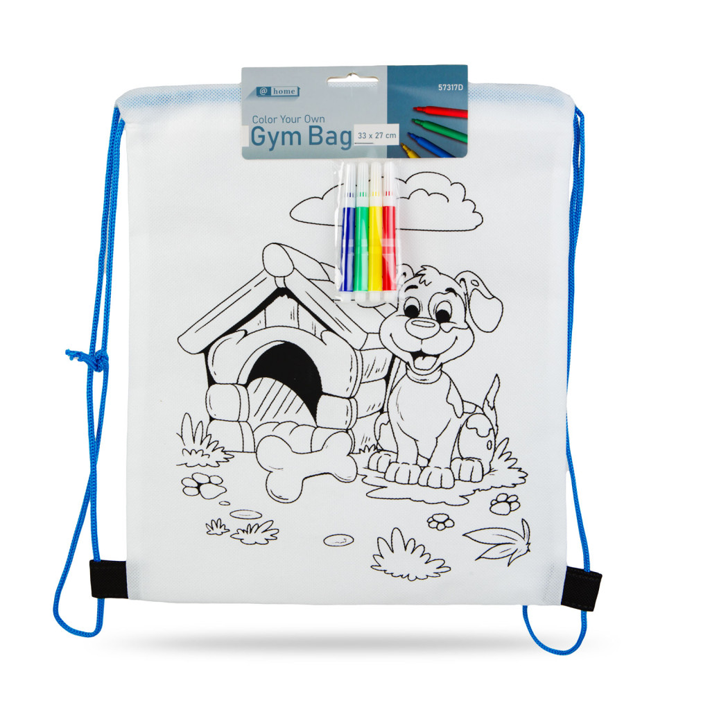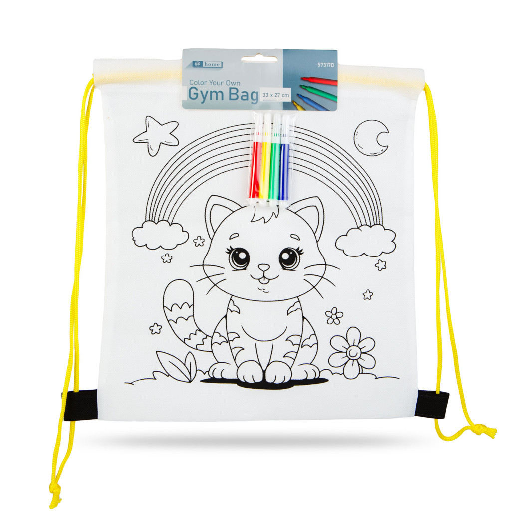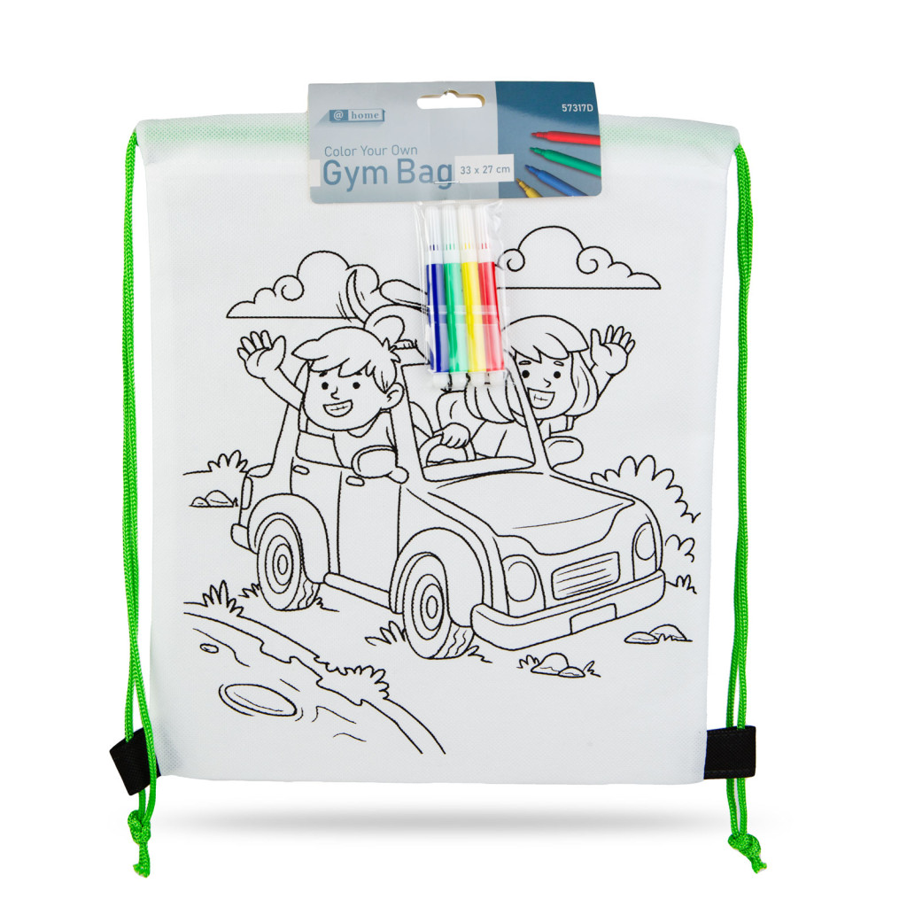 Színezd magad tornazsák, hátizsák színes filctoll készlettel. Kettő az egyben: tornazsák és foglalkoztató gyerekeknek. Színezéskor a zsák két anyaga közé vastagabb papírt kell tenni, hogy a hátoldalra ne kerüljön festék.