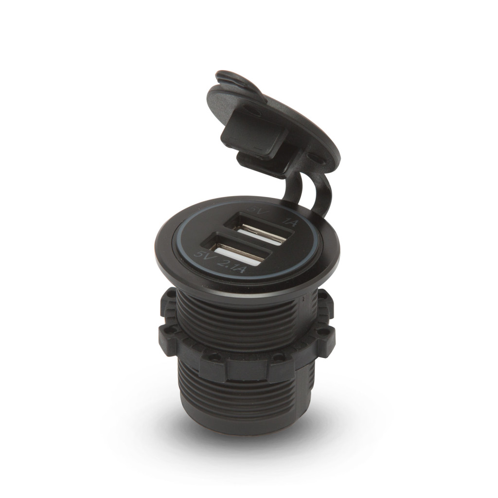 Autós szivargyújtó helyére beépíthető USB aljzat. Használatával nincs szükség a szivartyújtóba dugható USB adapterre, az egész szivargyújtó aljzat cserélhető, ezáltal megelőzhetőek az esetleges érintkezési hibák. A zöld világítás jelzi, hogy feszültség alatt van az aljzat, továbbá sötétben elősegíti az USB kábel csatlakoztatását. A gumi zárókupak megakadályozza, hogy por, szennyeződés jusson az USB portokba, valamint használaton kívül a kék LED világítást eltakarja. Ez a zárókupak tetszés szerint eltávolítható.