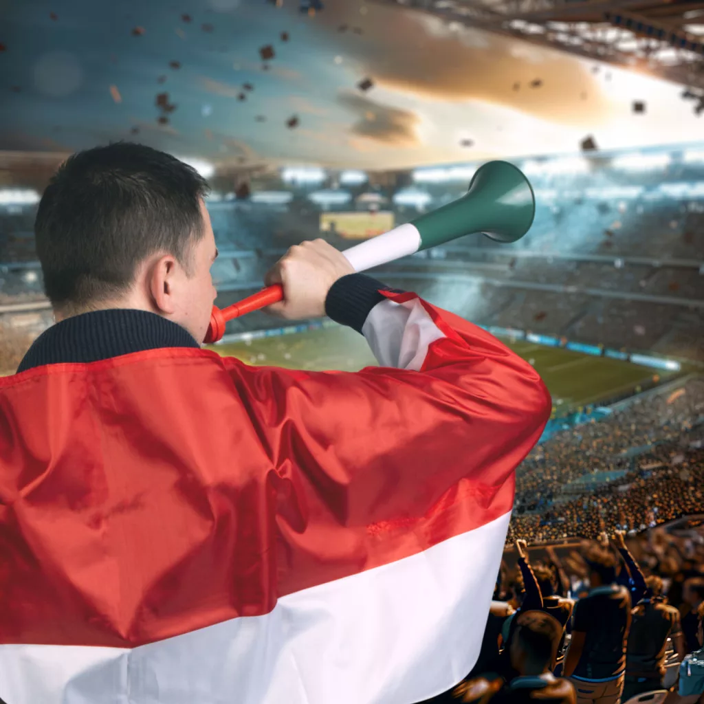 Ünnepeljen magyar sporteseményeket, szurkolói kalapban, dudával, zászlóval. A duda megfújását követően hangos kürtölő hangot ad ki.