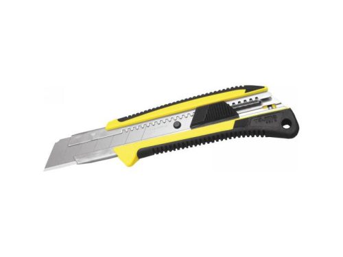 Cserélhető betétes gumiborítású acél kés, EXTRA TARTÓS ”ENDURA”(extrém éltartás, rendkívül éles) edzett pengével. automata zár 25mm széles penge pótpenge kódja: LB-65 126mm hosszú vágóél 14mm-enként tördelhető (6 letörhető él) a penge-él 60°-os szöget zár be