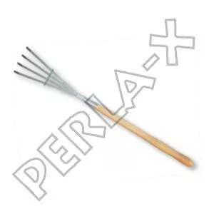 Fémből készült temetői lombseprű hosszított fa nyéllel, négy lombgyűjtő foggal. Kiválóan alkalmas síremlékek környezetének karbantartásához, a lehullott lomb eltakarításához.