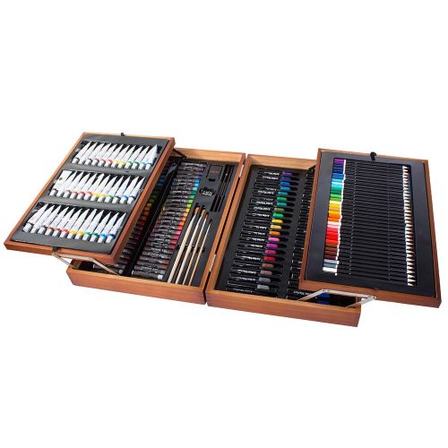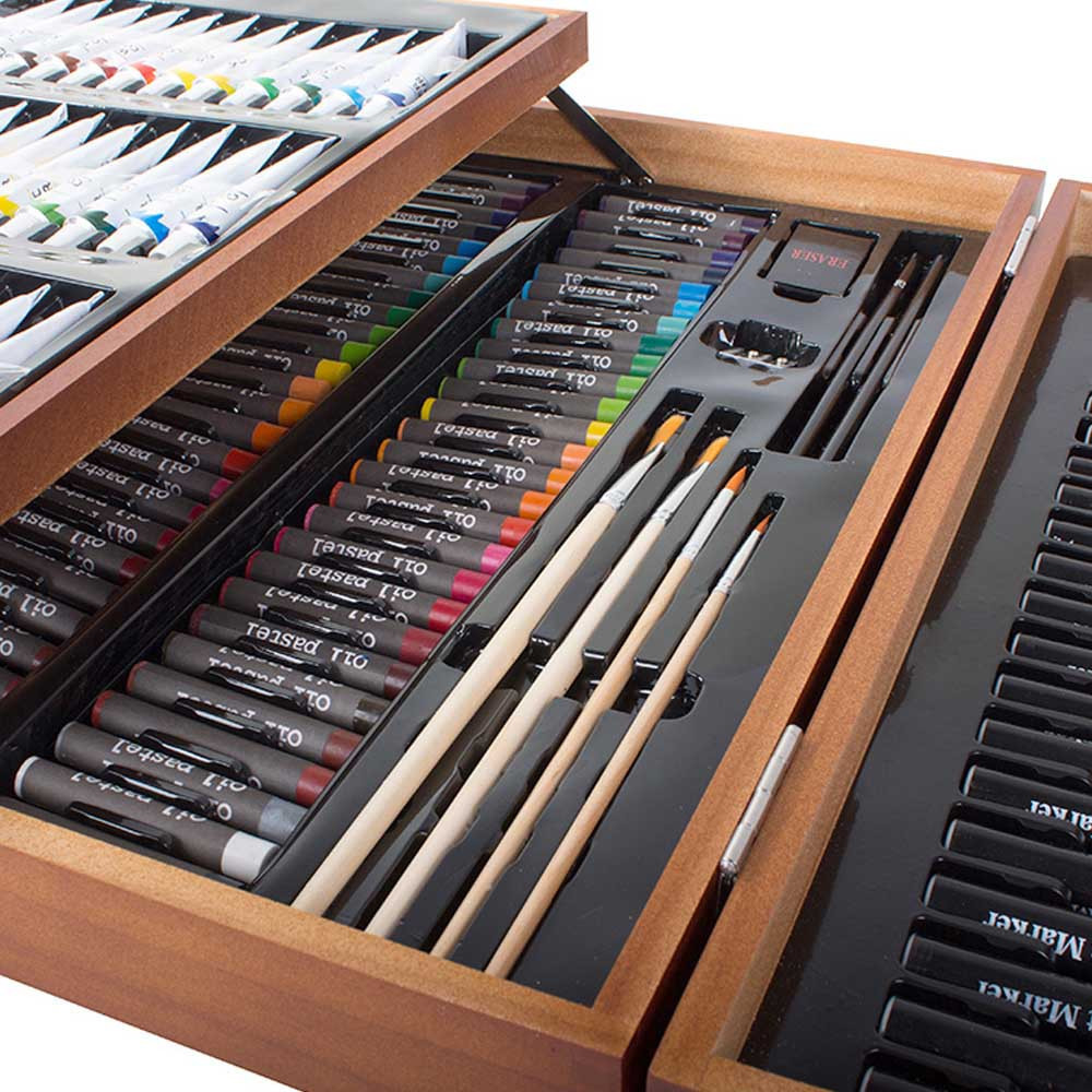 174 részes festő-és rajzkészlet praktikus, fa díszdobozban