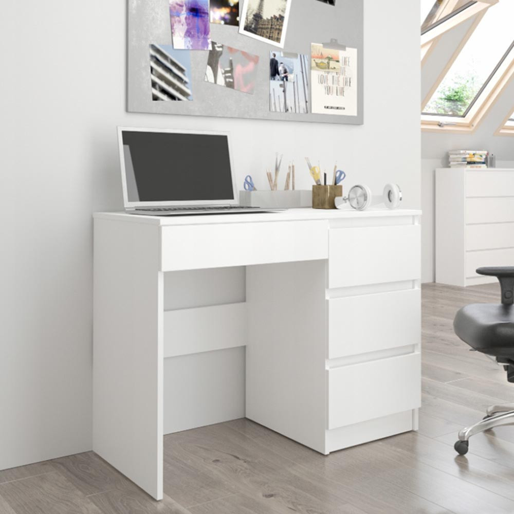 Ezzel a modern, minimalista stílusú íróasztallal tökéletesen kiegészítheted dolgozószobád vagy tanulósarkod. Kompakt méretének köszönhetően nem foglal sok helyet, miközben elegendő tárolókapacitást biztosít a mindennapi munkához vagy tanuláshoz.