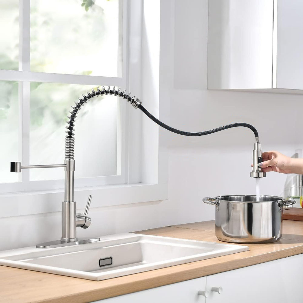 Ez a mosogató csaptelep flexibilis csővel és levehető zuhanyfejjel kényelmes és funkcionális megoldás a konyhai feladatokhoz. A 70 cm-re kihúzható cső lehetővé teszi a könnyű elérést és a hatékony tisztítást, míg az állítható vízsugár segít a különböző feladatokhoz való alkalmazkodásban. A csaptelep munkalapra és mosogatóra is felszerelhető, így ideális választás minden konyhába, ahol a praktikum és a stílus egyaránt fontos.
