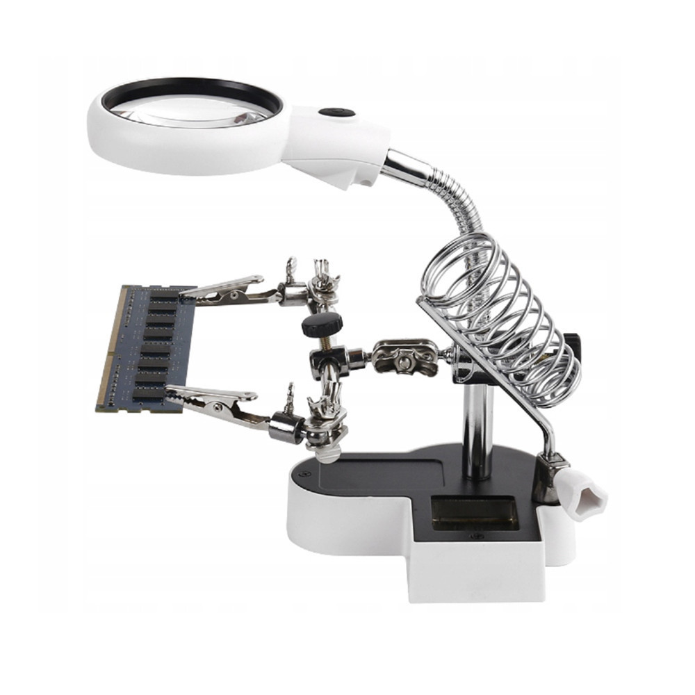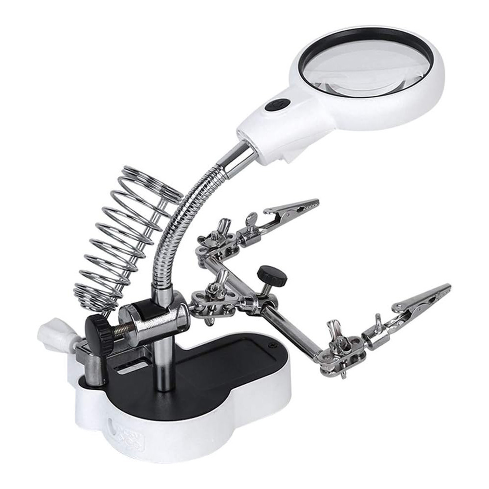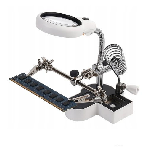 Paneltartó (harmadik kéz) LED-es nagyítóval, 2 db csipesszel, pákatartóval