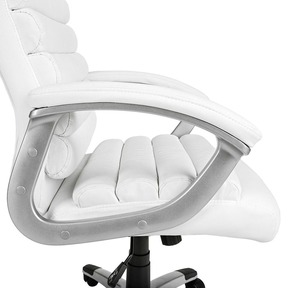 A prémium főnöki forgószék nemcsak esztétikus megjelenésével, hanem kiemelkedő kényelmével is tökéletes választás irodába vagy otthoni munkavégzéshez. Párnázott ülőfelülete és háttámlája hosszú órákon át biztosítja a megfelelő alátámasztást, míg szintetikus bőr borítása elegáns és könnyen tisztítható felületet kínál.