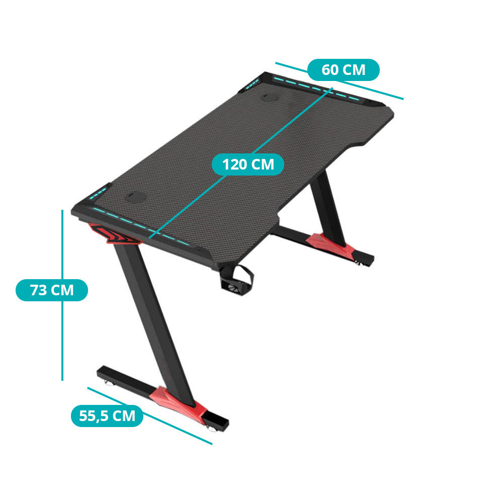 Professzionális gamer asztal karbonszálas bevonattal, LED világítással