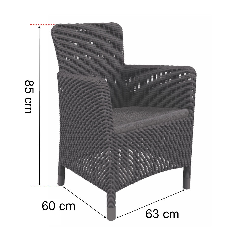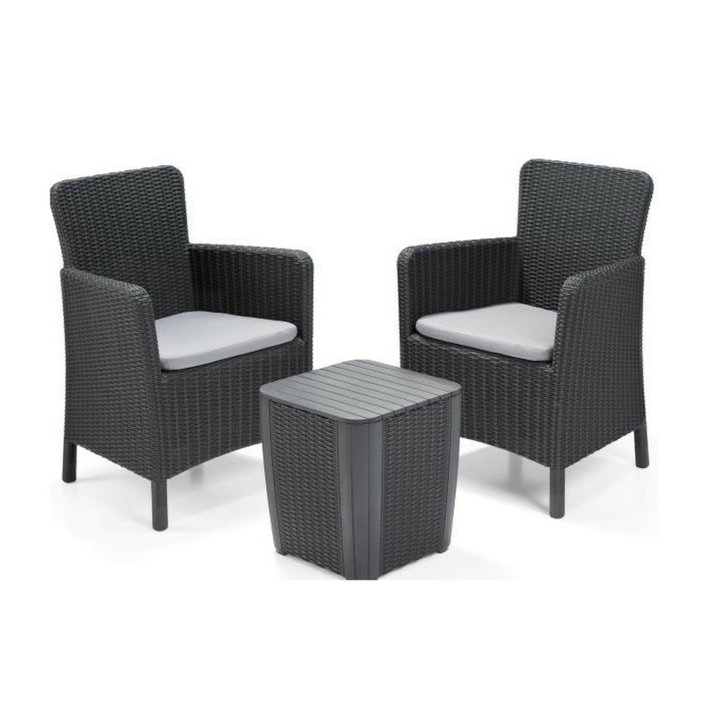A Trenton Balcony kerti bútor szett ideális választás azok számára, akik kis helyre, például erkélyre vagy teraszra keresnek kényelmes és stílusos kerti garnitúrát. Ezek a bútorok elegánsak és kényelmesek. Grafit színű rattan hatású kialakításuk minőségi időjárásálló műanyagból készült, így biztos lehetsz benne, hogy hosszú élettartamuk lesz, sokáig élvezheted benne a kültéri, vagy beltéri pihenést.