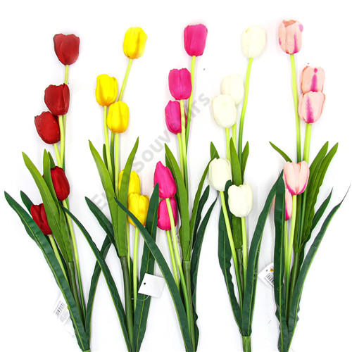TULIPÁN SELYEM 5 FEJ 100/800 5 SZÍNBEN FEJ:5x3 cm; SZÁR:70 cm