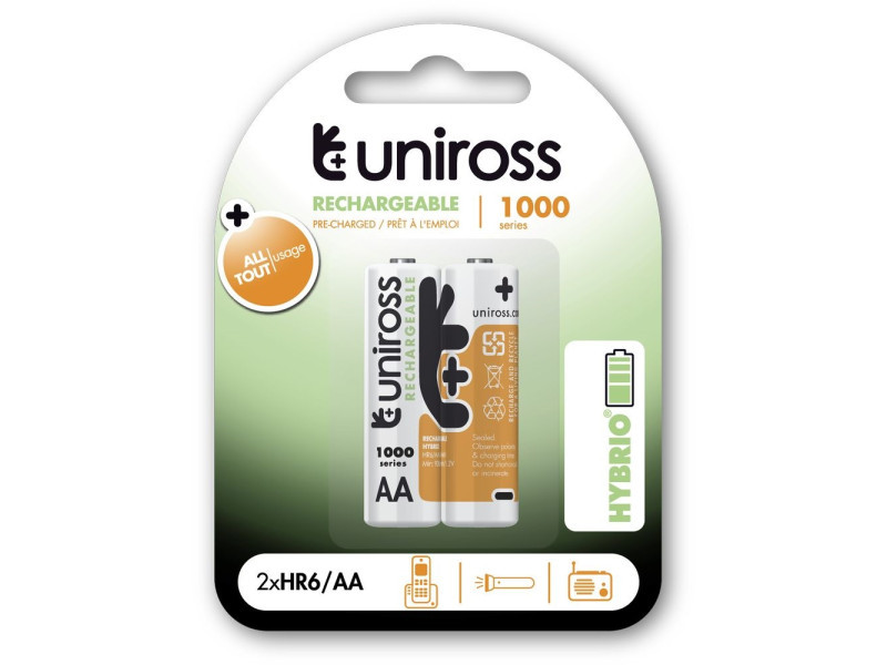 Azonnal használható, nagy teljesítményű újratölthető akkumulátor fogyasztói alkalmazásokhozAz akkumulátor a csomagolásból kivéve, előzetes feltöltés nélkül használatra készek. A felhasználó számára ugyanazt a kényelmet biztosítja, mint a szabványos elem, de használat után fel is feltölthető.Hosszú tárolási idő az aktív kapacitás csökkenése nélkülKiváló technológiája révén nagyon alacsony az önkisülése, tárolása során a kapacitása 80%-át a vásárlás után 1 évig is megőrzi.Kiváló teljesítmény nagy energiaigényű készülékekbenAz Uniross újratölthető akkumulátorok az alkáli társainál jobban teljesítenek, mivel kisütési ciklusuk 80%-ában egyenletes feszültséget adnak.