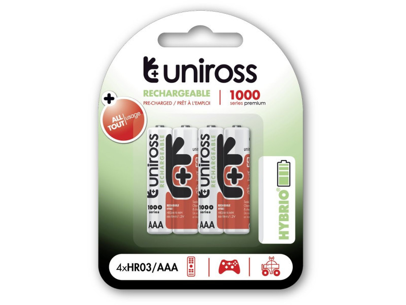 Azonnal használható, nagy teljesítményű újratölthető akkumulátor fogyasztói alkalmazásokhozAz akkumulátor a csomagolásból kivéve, előzetes feltöltés nélkül használatra készek. A felhasználó számára ugyanazt a kényelmet biztosítja, mint a szabványos elem, de használat után fel is feltölthető.Hosszú tárolási idő az aktív kapacitás csökkenése nélkülKiváló technológiája révén nagyon alacsony az önkisülése, tárolása során a kapacitása 80%-át a vásárlás után 1 évig is megőrzi.Kiváló teljesítmény nagy energiaigényű készülékekbenAz Uniross újratölthető akkumulátorok az alkáli társainál jobban teljesítenek, mivel kisütési ciklusuk 80%-ában egyenletes feszültséget adnak.