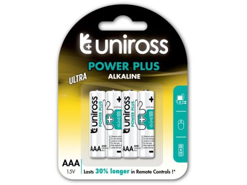 Az UNIROSS Power Plus család masszív felépítésű, szivárgásmentes elemeket kínál, napi használatra.A széles termékpaletta minden tagja 100% kadmium, higany és ólom mentes, mégis kiváló szavatossági idővel rendelkezik (gyártástól számított 5 év). Biztonsággal tárolható akár extrém raktári körülmények között is (45 Celsius fokig). Kiváló kisülési jellemzők - az UNIROSS Power Plus elemeket remek eredményekkel változatos körülmények között tesztelték, szimulálva a valós eszközhasználati környezetet, biztosítva ezeknek az eszközöknek a folyamatos és egyenletes áramellátását.Ideális számtalan eszközhöz: távirányítókba, füstérzékelőkbe, vezetéknélküli egerekbe, gyerekjátékokba, távirányítós autókba, elemlámpákba, rádiókba, faliórákba, stb.