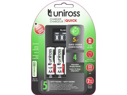 UNIROSS kompakt gyorstöltő + 4db AA/ceruza akkumulátor 1,2 V 2100 mAh