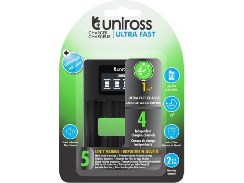 UNIROSS processzoros gyorstöltő LCD AA/AAA védelemmel