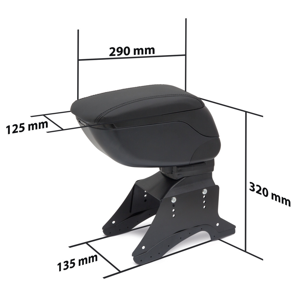 Univerzális autós könyöklő, kartámasz. A legtöbb autóba fúrás és csavarozás nélkül beszerelhető. A kartámasz teteje felhajtható, alatta egy nagyobb tárolórekesz található, amely ideális lehet különböző tárgyak elhelyezésére, pl. pénztárca, kulcs, napszemüveg... A felső rész puha anyagból készült és előre húzható, így mérete állítható, ezzel is biztosítva a kényemes utazást. Segítségével könnyebben érjük el és kezelhetjük a váltót. A tárolórekesz alsó részén található tekerővel beállíthatjuk a könyöklő alap dőlésszögét, így a legtöbb autóhoz testreszabható.