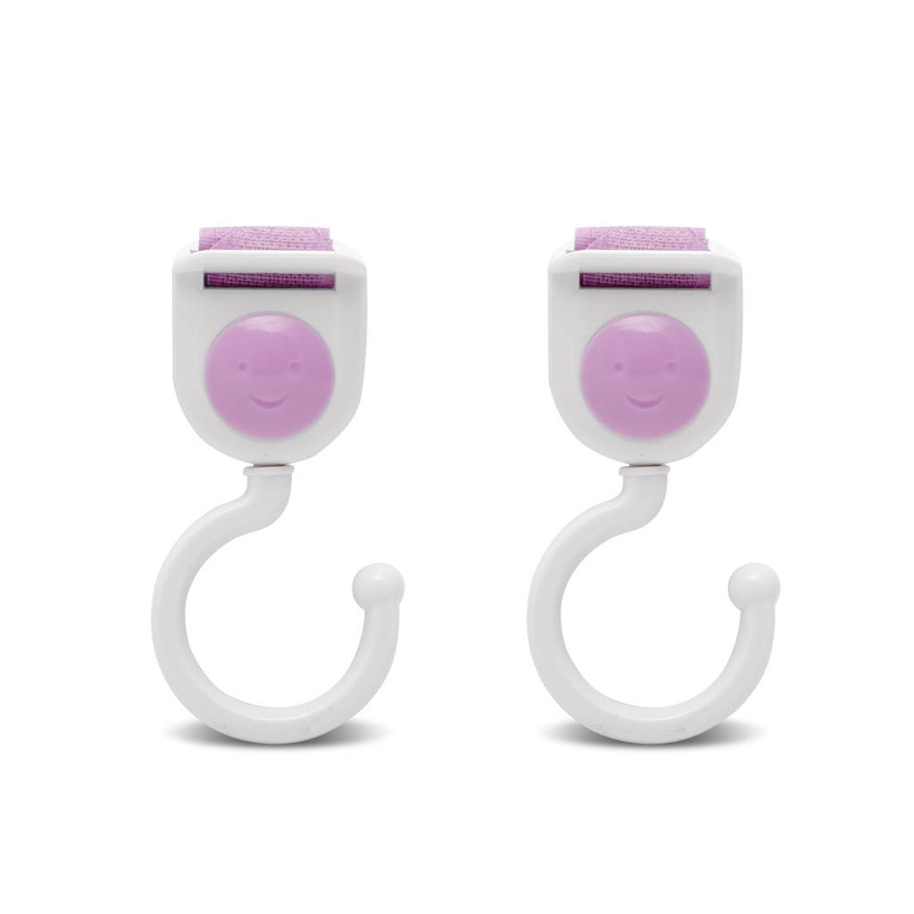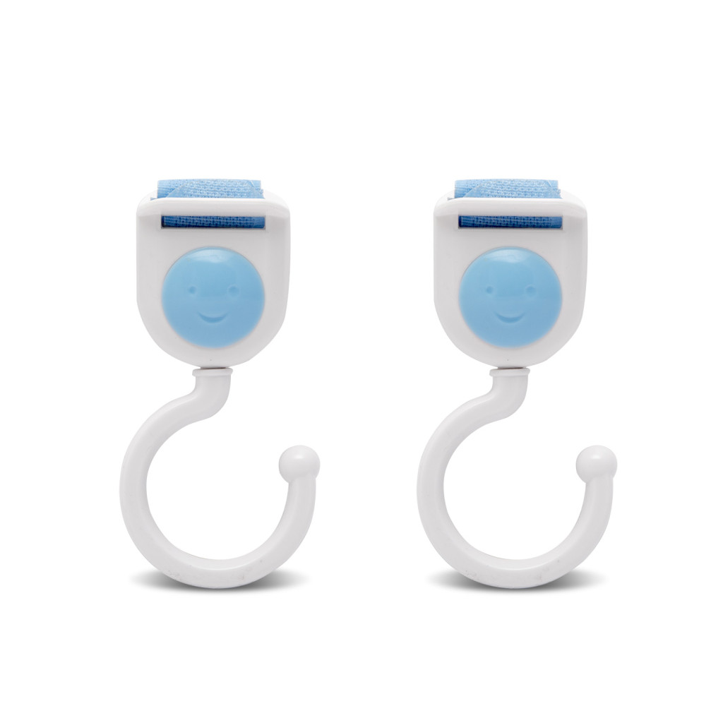 Univerzális kampó, melyet babakocsira, hordozóra is lehet rögzíteni a tépőzár segítségével. Táska, játék stb. akasztható rá.