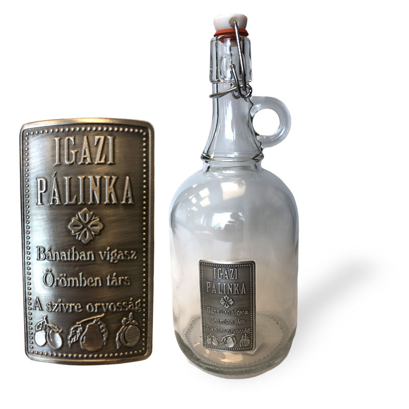 Üveg, csatos, füles 1l - ón cimkés