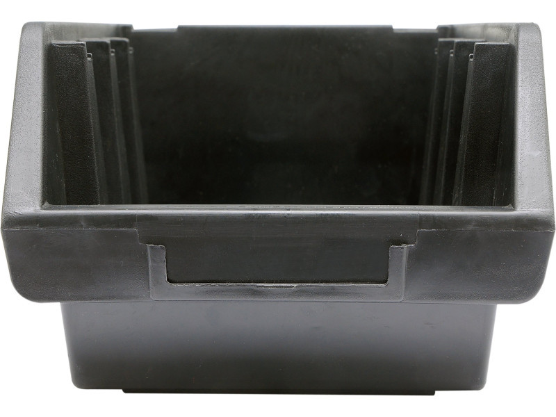 Tárolódoboz 17x24x12,6 cm méretben. Fekete színű műanyagból készült. A dobozok egymásra rakhatók és szerszámtáblákkal használhatók.
