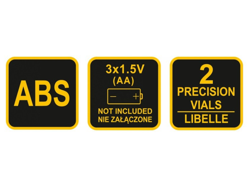 Sarok-, vonallézer két 90°-os vonallal Erősen látható piros vonalak, kb. 10 m-es hatótávolsággal Szívókorongok, amelyek stabil rögzítést biztosítanak sík vízszintes és függőleges felületeken két vízmérték ABS műanyagból készült ház három lyuk a lézer rögzítéséhez, például szögekkel vagy szegekkel, például fából készült felületre tápellátás - három 1,5 V AA elem Használati útmutató: helyezze a lézert a kívánt felületre, rögzítse a szívókorongokkal kapcsolja be a lézert a központi kapcsolóval nyomja meg a szívókorongokat a téglalap alakú fekete billentyűkkel, amelyek a vízmérték mellett találhatók   Az eszköz felújítási, építési, dekorációs munkákhoz készült. Pontosan meghatározza az egyenes vonalakat és a 90°-os szögeket. Főként csempézési munkálatokhoz ajánlott. A termék nem tartalmazza az elemeket.