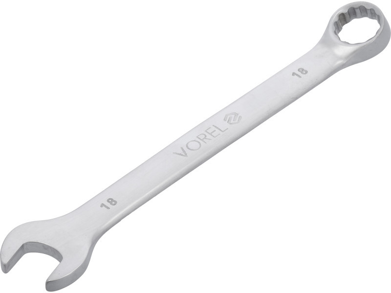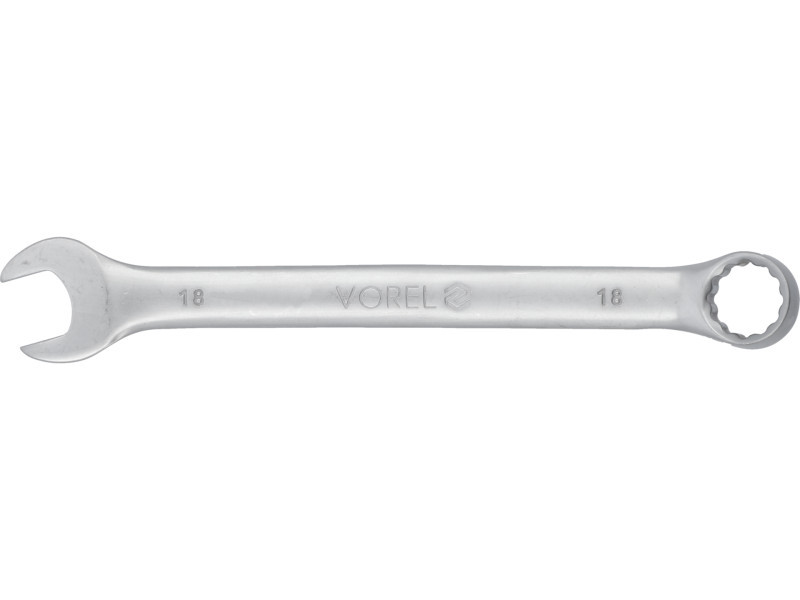 18 mm lapos kulcs a Vorel 51683-tól. CRV króm-vanádium acélból készült. Matricásan kovácsolt kulcs, tökéletesen hangolt. A szatén befejezés minimalizálja a szennyeződés kulcsának csúszását. Két szögű szemvég, továbbá hajlított, ami megkönnyíti a kulcs manőverezését.