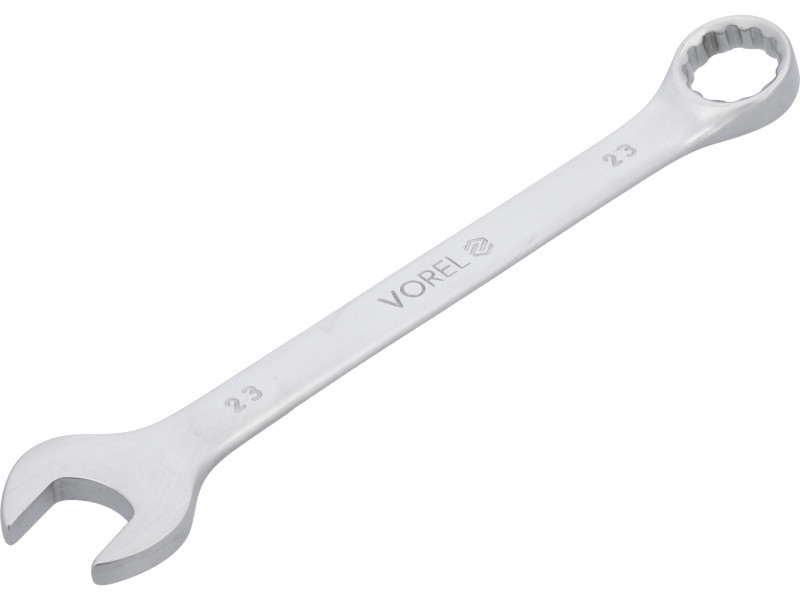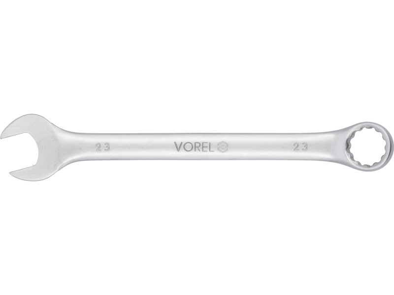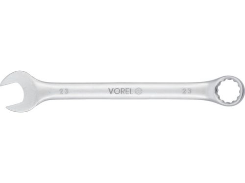 23 mm-es laposkulcs a Vorel 51688-tól. CRV króm-vanádium acélból készült. Matricán kovácsolt kulcs, tökéletesen hangolt. A szatén befejezés minimalizálja a szennyeződés kulcsának csúszását. Két szögű szemcsúcs, továbbá hajlított, ami megkönnyíti a kulccsal való manőverezést.