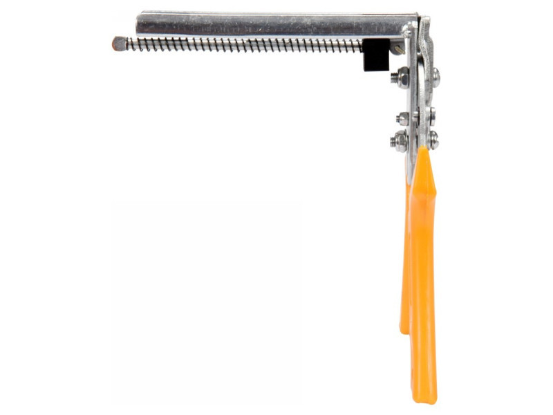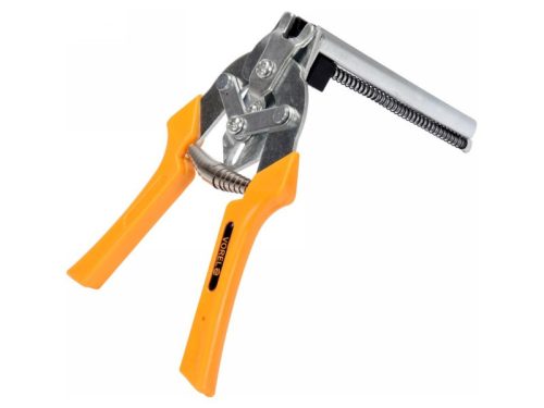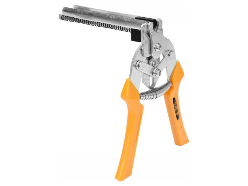 Fogók, melyeket kerítéshálók gyors és hatékony rögzítésére terveztek a feszítődróthoz. Használatosak hálófalú keretek építésénél is, például nyúl- vagy baromfitartás céljából. A fogók horganyzott vastag acéllemezből készültek, a nyél ergonómikus vinil borítással van ellátva. A fogó munkáját jelentősen megkönnyíti a tűzőgép, amely körülbelül 40 E típusú kapocs tárolására képes /például vorel 49841/ a fogó egy munkafázis során a fémkapcsot a csatlakoztatott drótok köré szorítja. / Egy nyél lenyomásával. Fogók, amelyeket kerítéshálók gyors és hatékony rögzítésére terveztünk a feszítődróthoz. Használatosak hálófalú keretek építésénél is, például nyúl- vagy baromfitartás céljából. Töltsük be a kapcsokat a tűzőgépbe. Helyezzük a csatlakoztatott drótokat a dugó etető vágószerszámba és szorítsuk össze a nyelét. A menet a csatlakoztatott drótok köré tekeredik. Fogók
