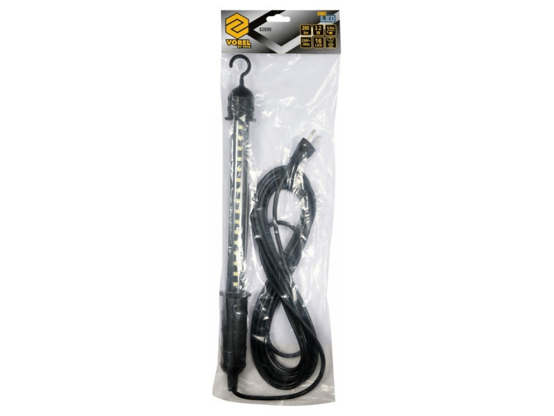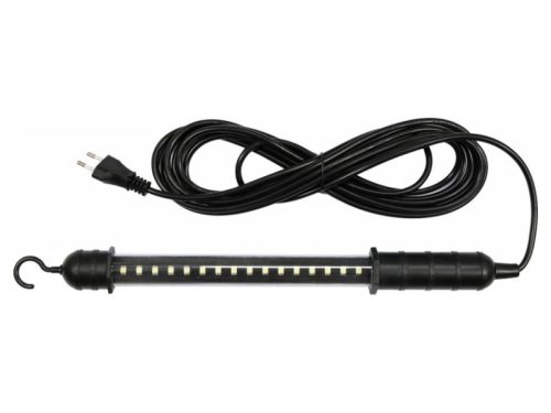 Univerzális SMD LED hordozható lámpa kábellel. Ideális helyettesítője a népszerű, alacsony költségű, műhelyekben vagy barkács garázsokban gyakran használt fénycsöveknek. A hatékony és modern SMD LED forrásoknak köszönhetően a lámpa háromszoros fényáramot ad le, 280 lm. A lámpa öt méteres polivinil vezetékkel van felszerelve. A lámpán erősített hajlítás van a vezeték kopásának további védelme érdekében. A lámpán erősített hajlítás van a vezeték kopásának további védelme érdekébenA SMD LED forrás használatának további előnyei: nincs szükség a fénycső cseréjére a lámpa mechanikai sérülésekkel szembeni tartóssága növekedett a gyújtórendszer élettartama többszörösen hosszabb jelentősen alacsonyabb energiafogyasztás: a 3.2 W-os SMD LED lámpa háromszoros fényáramot ad le egy 8 W-os fénycsővel szemben kedvező fény szín, 4000 K Felhasználás / alkalmazásA lámpa hobbi és szakmai használatra is alkalmas autószerelő műhelyekben. A lámpa hobbi és szakmai használatra is alkalmas autószerelő műhelyekbenMűszaki adatok fényforrás: SMD LED teljesítmény [W]: 3.2 fényáram [lm]: 280 fény szín: 4000K tápegység: 230V 50Hz védettségi osztály: II védettségi osztály [IP]: IP 20 burkolat: műanyag kupak és foglalat szín: fekete diffúzor : átlátszó PVC méretek [mm]: 450 x 35 akasztó : igen mágnes: nem kapcsoló: nem kábel:  ;polivinil vezeték 2x0.75mm2 kábel hossza [m]: 5