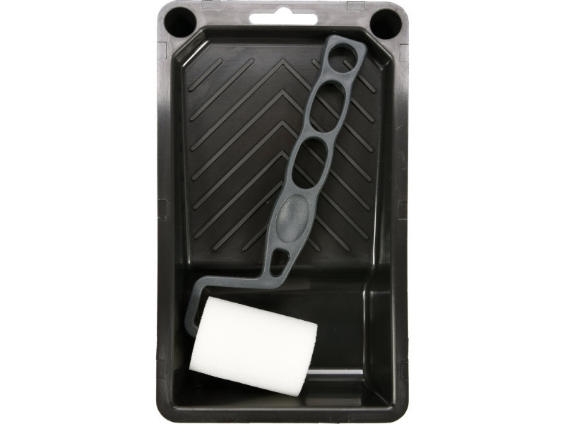 Könnyű festőhenger, 5 cm hosszúságban, műanyag festéktálcával együtt, a festék kényelmes merítéséhez és a felesleges festék kinyomásához.