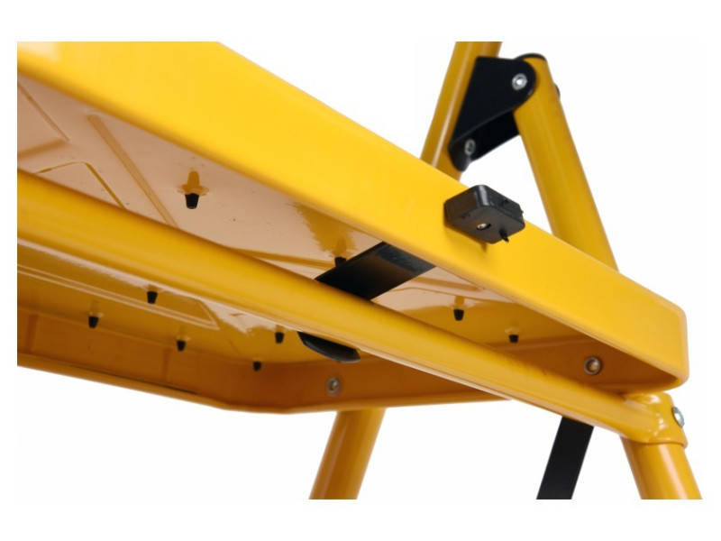 A beépített zárszerkezet megakadályozza, hogy a létra használat közben összecsukódjon, tovább növelve a munkabiztonságot.