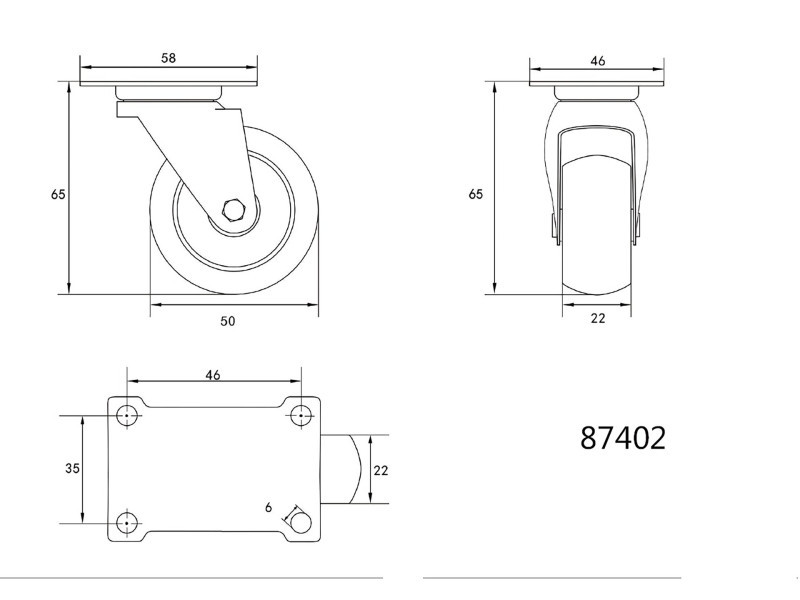 Forgatható kerék, 50 mm átmérőjű, csapágyazott, rögzítőlemezzel, polipropilénből készült. Forgatható kerék, 50 mm átmérőjű, csapágyazott, rögzítőlemezzel, polipropilénből készült.