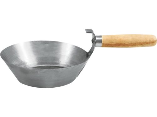 Festőkanál készült bevonat nélküli fekete acélból, fa nyéllel.