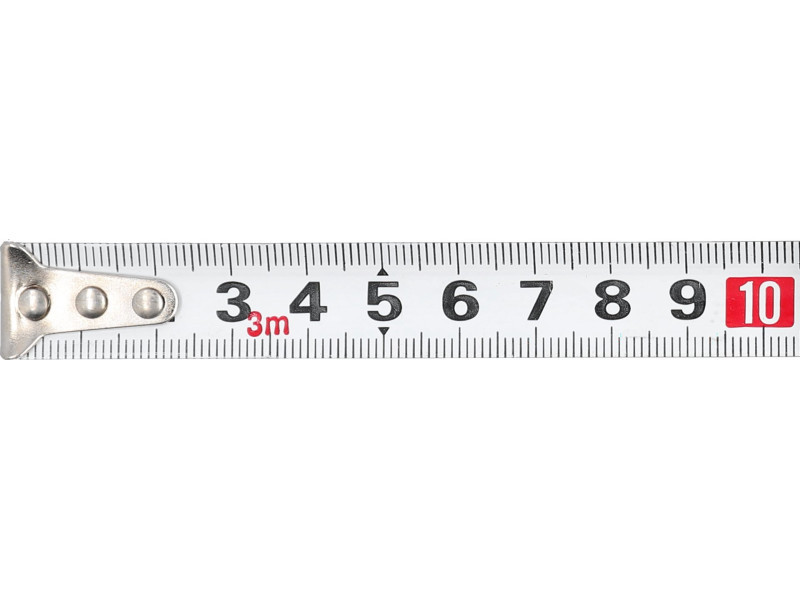 Rozsdamentes acél szíj, 3 m hosszúságban 16 mm széles rögzített horgal végződik a ház gumi bevonattal megerősített műanyagból készült három kulcs záras szalag a kazettához csat van csatolva  mm  Gyors, pontos mérések elvégzésére akár 3 m-ig.