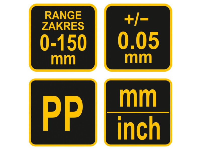 150 mm műanyag csúsztatómérő   Polipropilénből készült Mérési tartomány: 0-150 mm Pontosság: (+/-) 0.05 mm Vernier skála: 0.05 mm, 1/128"   Külső, belső, magassági és mélységi mérések elvégzésére tervezve.